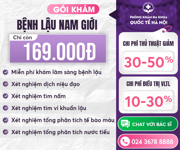 LƯU Ý: Gói khám bệnh lậu 169K kèm theo ưu đãi hỗ trợ chỉ áp dụng với bệnh nhân đăng ký đặt hẹn trước. Mọi bệnh nhân không có mã đặt hẹn sẽ thanh toán 100% phí gốc. Lấy mã giảm phí bằng cách nhắn tin trực tiếp cho bác sĩ trên web TẠI ĐÂY. Lấy mã đặt hẹn trước để nhận ưu đãi ➨ CHAT NGAY