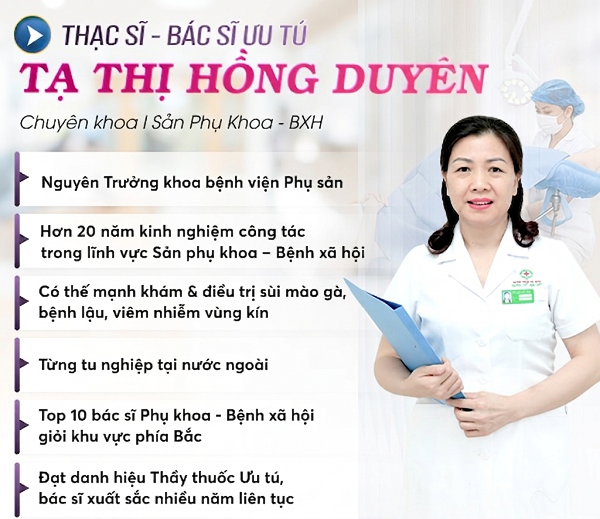 Đối với bệnh nhân mắc bệnh sùi mào gà thì phòng khám của ThS. Bác sĩ Tạ Thị Hồng Duyên là địa chỉ không thể bỏ qua.