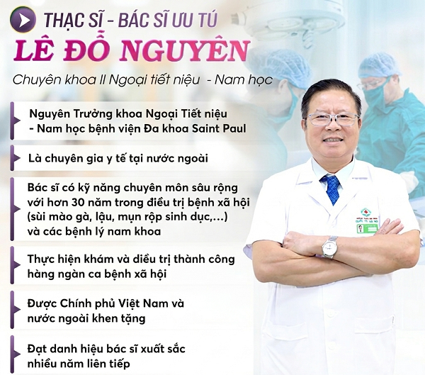 Bác sĩ Nguyên có hơn 30 năm kinh nghiệm trong lĩnh vực khám điều trị các bệnh lý nam khoa, bệnh tiết niệu, bệnh lây truyền qua đường tình dục.