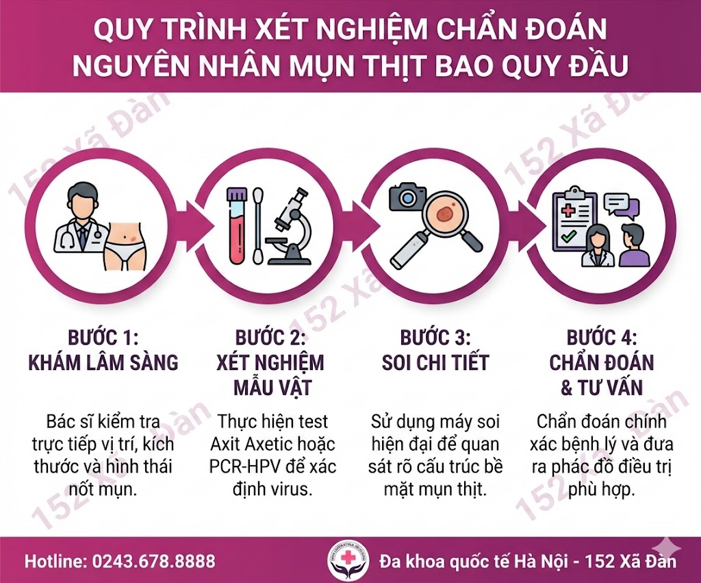 Vấn đề cốt lõi khi xuất hiện mụn thịt bất thường ở dương vật là cần thăm khám và làm xét nghiệm chuyên sâu để: